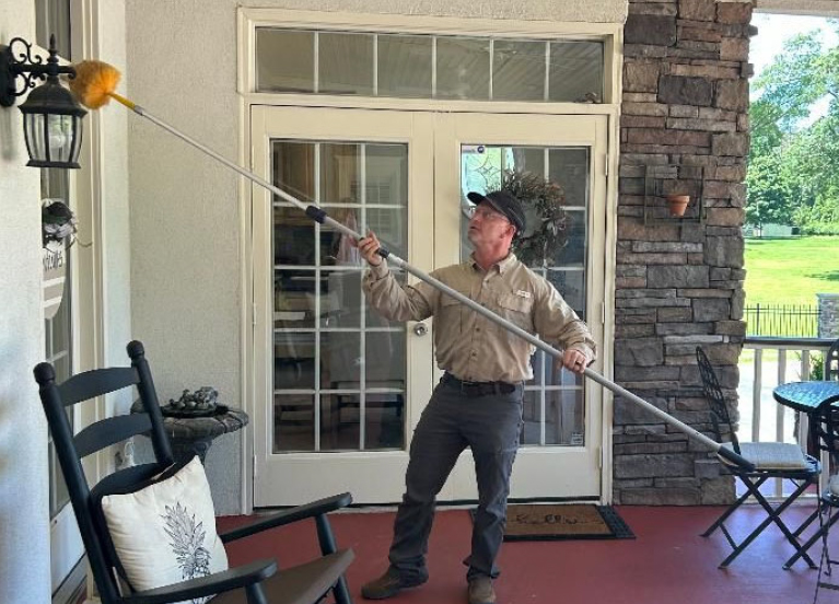 - Web brushing of all windows, doors, porches and soffit areas that are within reach